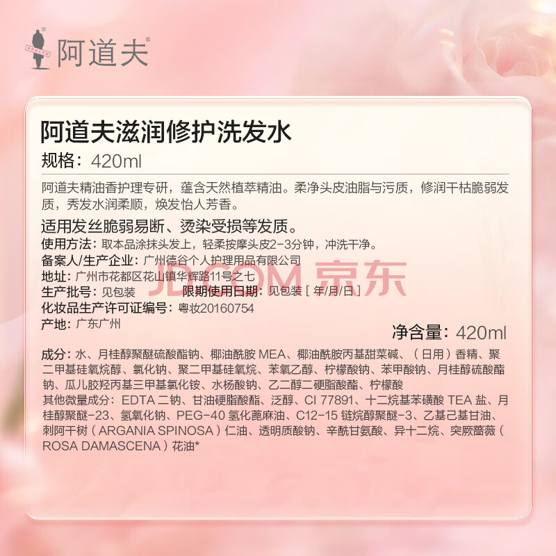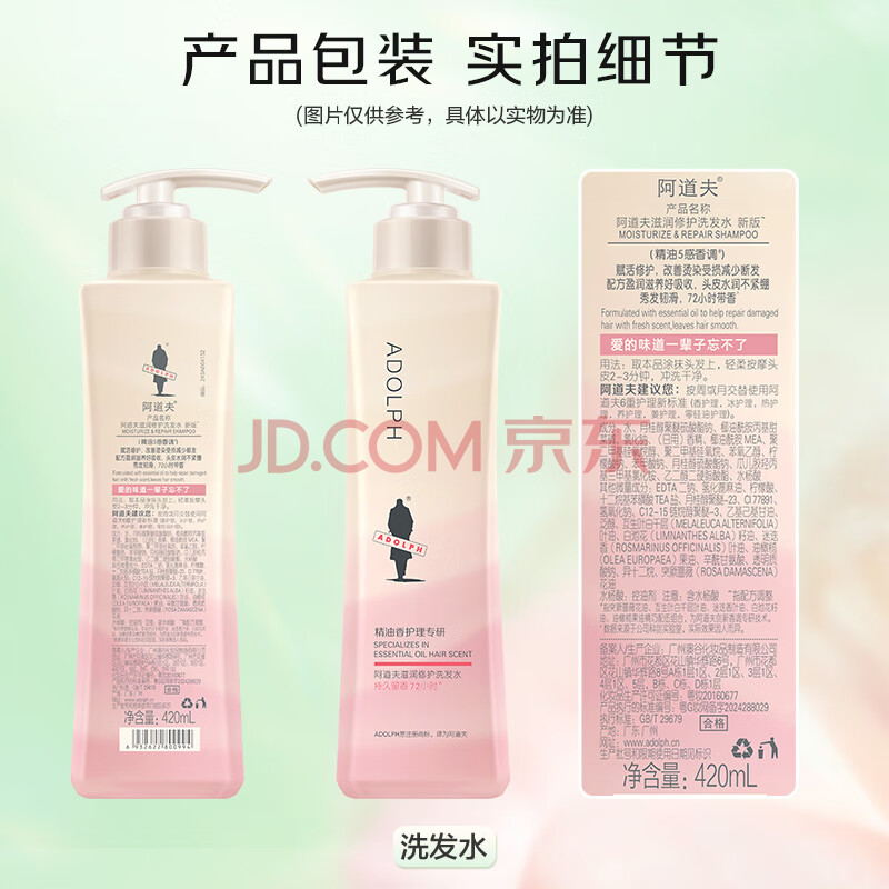 商品相册:阿道夫滋润修护洗发水420ml 修润干枯 精油香氛洗发露官方正品第