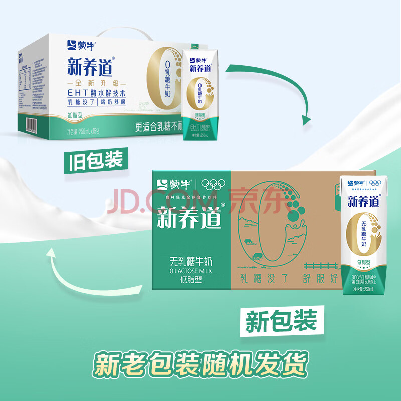 商品相册:蒙牛新养道无乳糖低脂牛奶250ml*15盒 乳糖不耐空腹喝 年货礼盒第