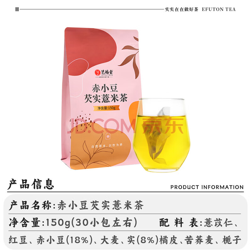 商品相册:艺福堂茶叶 花草茶 赤小豆芡实薏米茶150g 组合花茶 红豆袋泡养生茶第