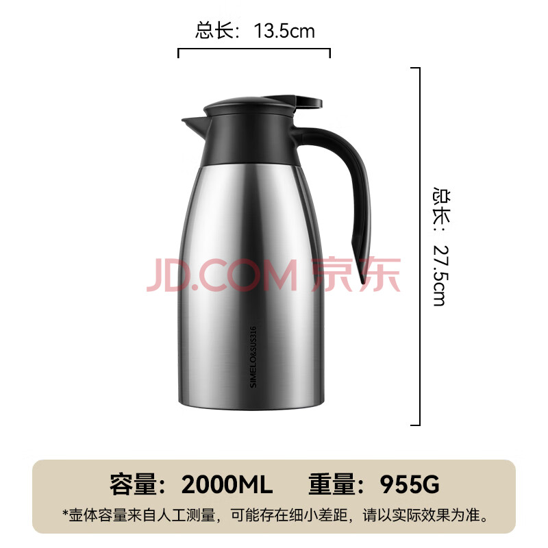 商品相册:SIMELO保温壶家用大容量316L不锈钢暖壶办公室热水壶保温瓶2.0L迎宾本色第