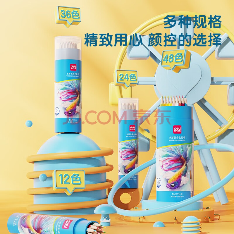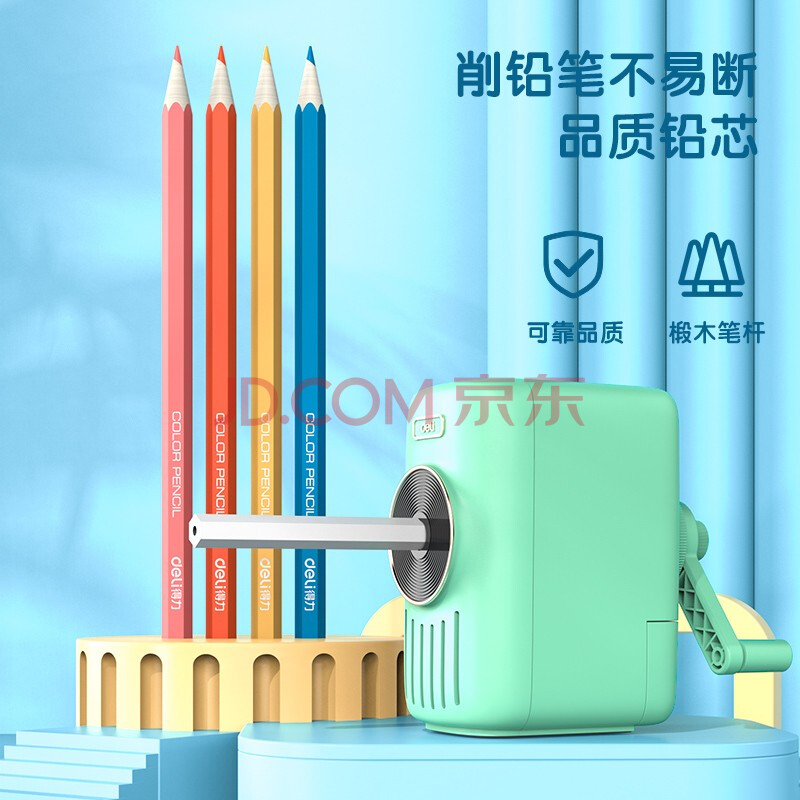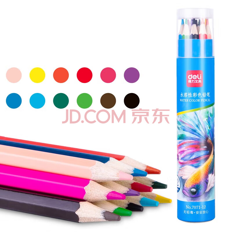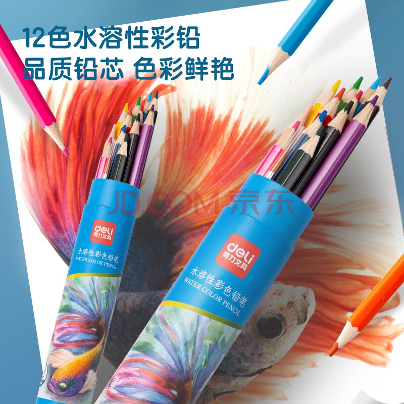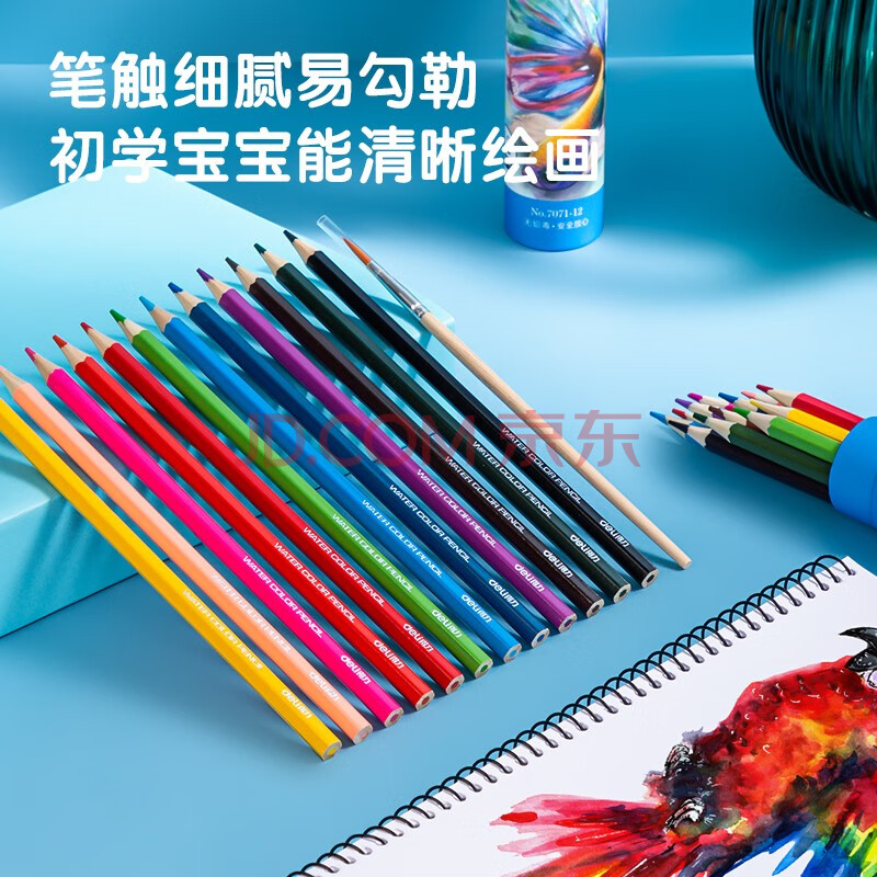 商品相册:得力(deli)12色水溶性彩铅原木六角杆彩色铅笔素描手绘初学者专业学生画笔套装纸筒彩笔第1张/共7