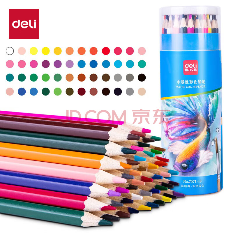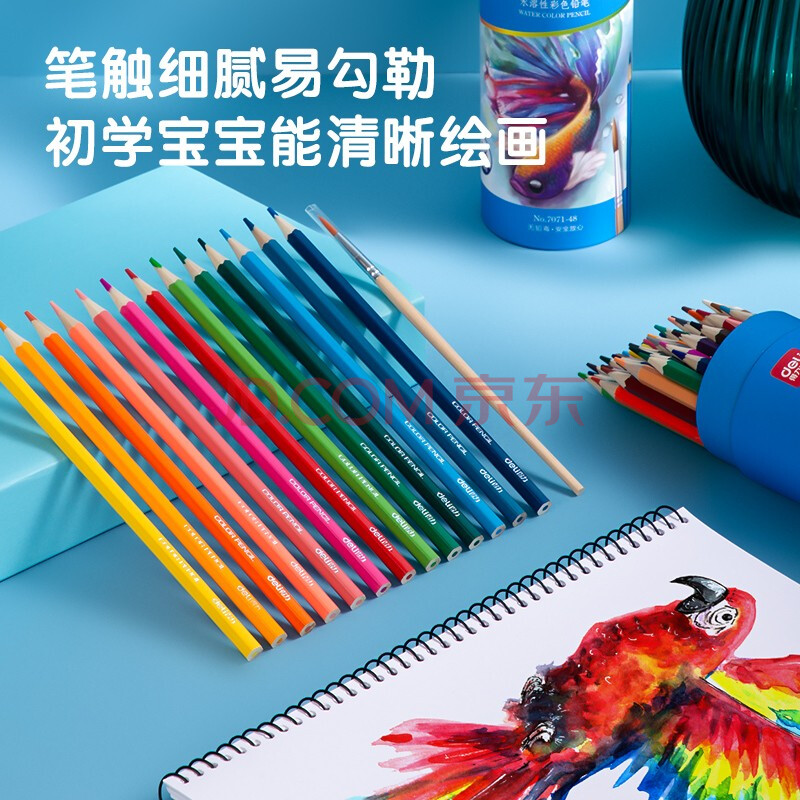 商品相册:得力(deli)48色水溶性彩铅原木六角杆彩色铅笔涂色填色画笔手绘画画儿童套装生日彩笔第