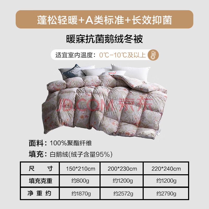 商品相册:水星家纺羽绒被95%白鹅绒被子冬季加厚冬被芯双人羽绒被220cm×240cm1200g第