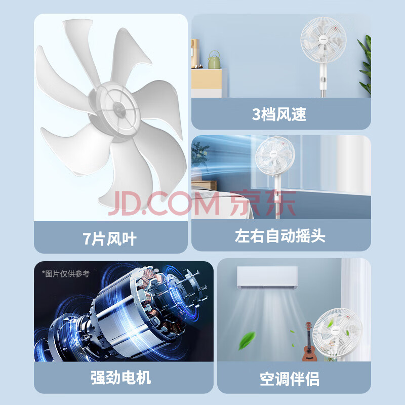 商品相册:康佳(KONKA)电风扇七叶柔和轻音大风量落地扇家用风扇节能低噪交流定频电扇广角摇头 KF-L17D(升级款)第