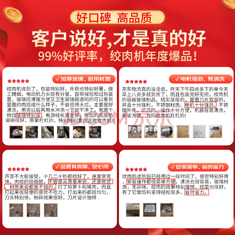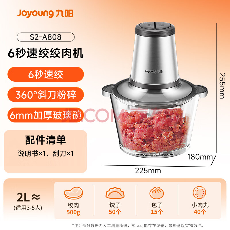 商品相册:九阳(Joyoung)绞肉机家用2L容量 绞馅机 碎肉机 电动多功能搅拌打肉饺子肉馅机S2-A808 第