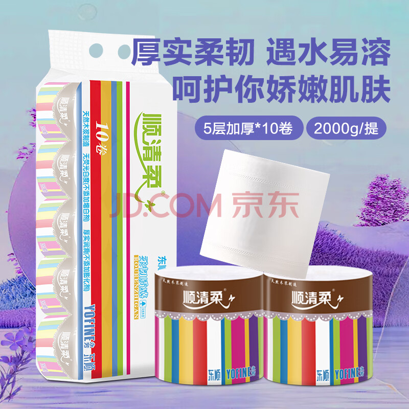 商品相册:顺清柔有芯卷纸彩虹系列5层200g*10卷 冲厕易溶解卫生纸厕纸(2kg/提)第