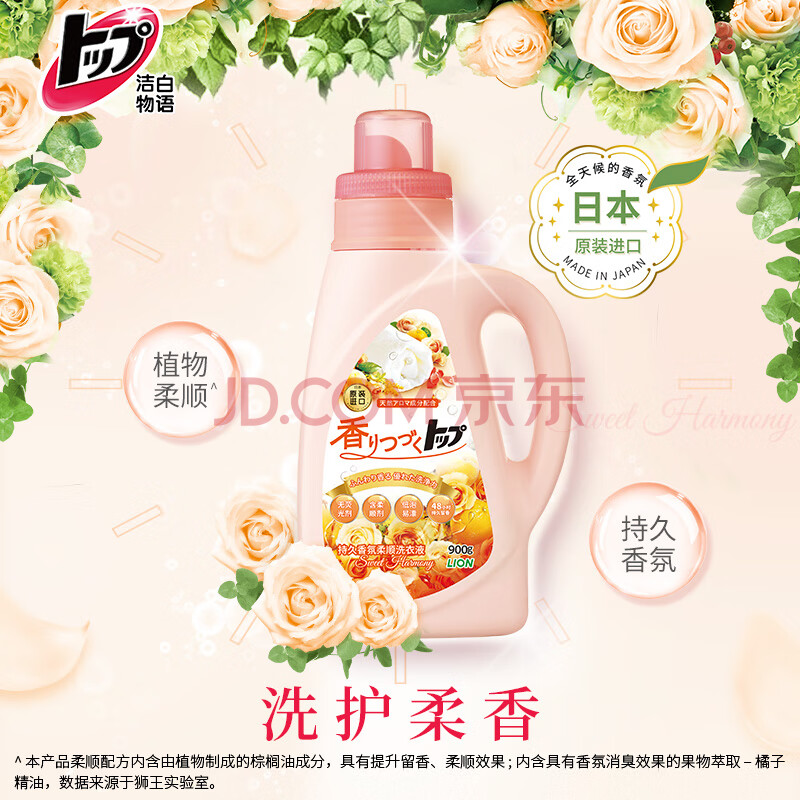 商品相册:狮王(Lion)持久香氛抑菌洗衣液花果香900g洁净持久留香易漂快洗进口无残留第
