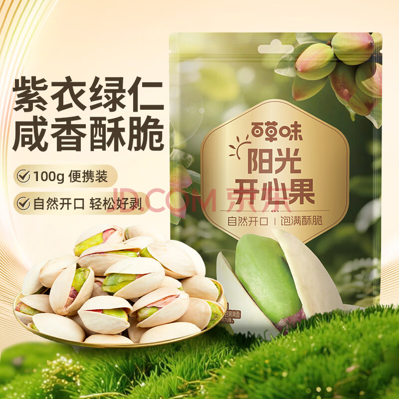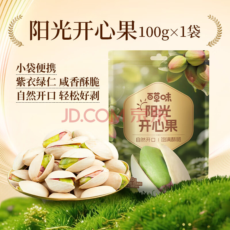 商品相册:百草味开心果盐焗味100g 每日坚果干果休闲零食特产新老包装随机发第