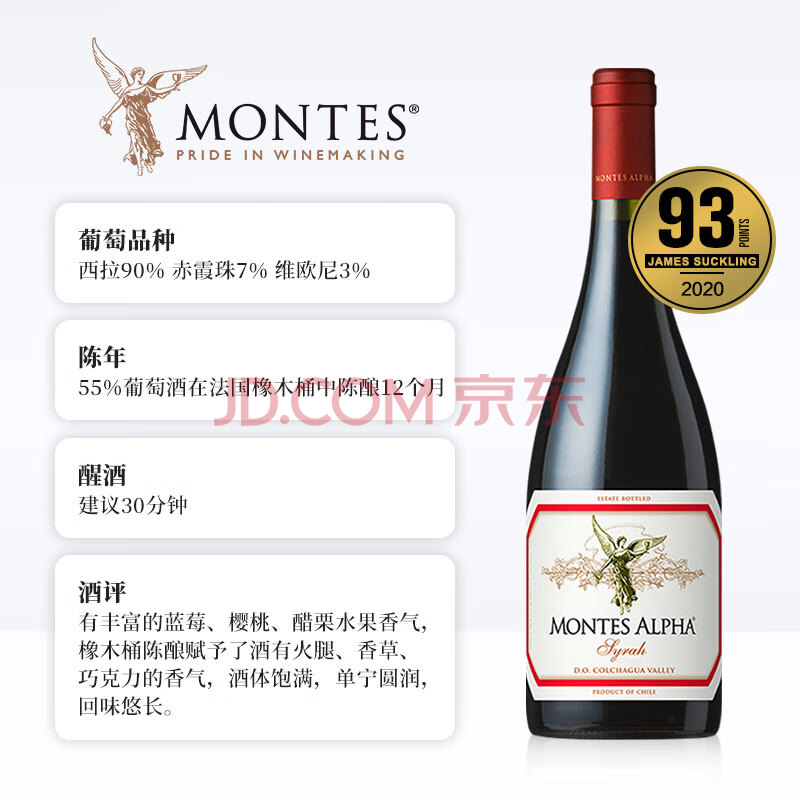 商品相册:MONTES蒙特斯欧法西拉红酒葡萄酒750ml*6日常婚礼商务宴请智利原瓶进口第