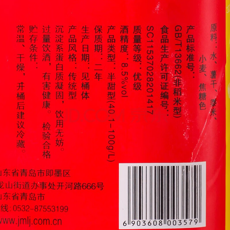 商品相册:即墨黄酒 众合 半甜型 北方黄酒 1.8L*4桶 整箱装第