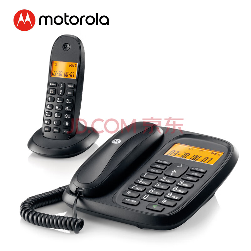 商品相册:摩托罗拉(Motorola)数字无绳电话机 无线座机 子母机一拖一 办公家用 内线对讲 大屏幕清晰免提固话套装CL101C(黑色)第1张/共6