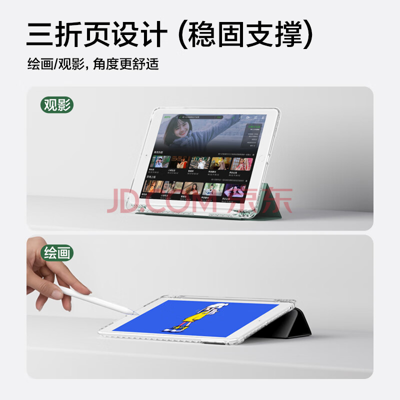 商品相册:品胜 适用于iPad 5/6/Air2 9.7英寸保护壳 2018款苹果平板保护套 全包防摔轻薄半透明三折外壳 黑色第