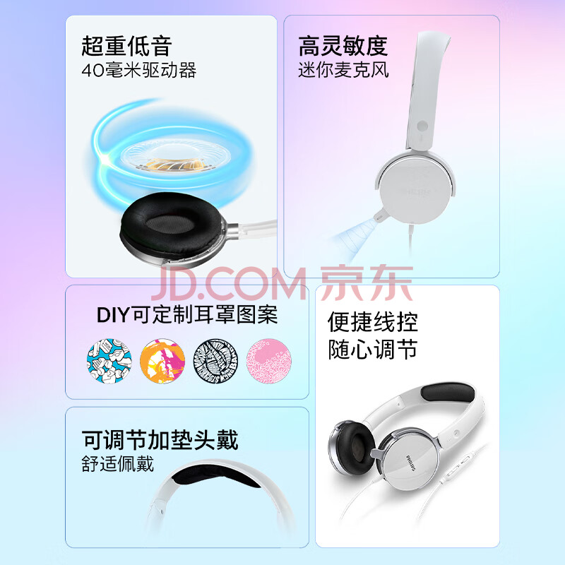 商品相册:飞利浦(PHILIPS)头戴式有线耳机带麦克风耳麦网上学习考试游戏儿童耳机电脑苹果安卓手机3.5mm送新年礼物SHM7110U第