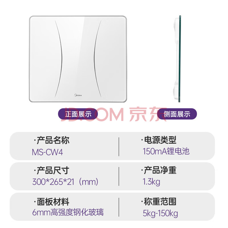 商品相册:美的(Midea)体重秤体重称家用健康称重计电子秤人体高精度智能体重称Led显示健身减肥运动第