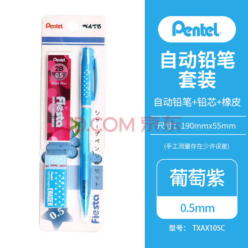 商品相册:派通(Pentel )自动铅笔0.5mm中小学生按动铅笔橡皮铅笔芯套装TXAX105C 葡萄紫第