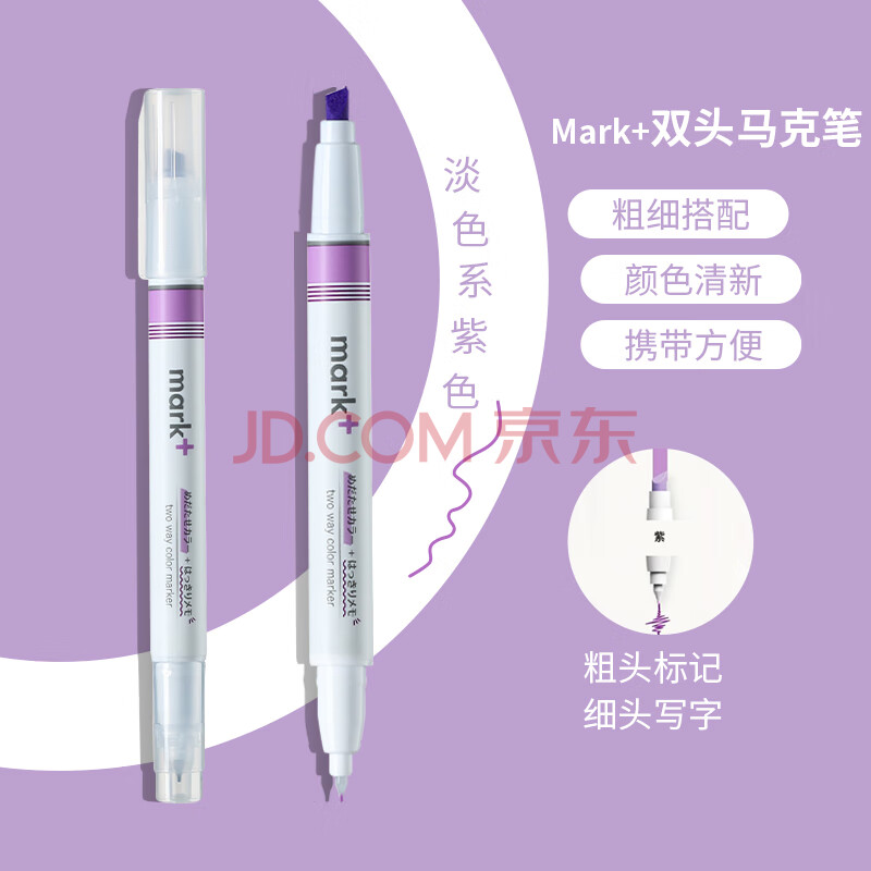 商品相册:国誉(KOKUYO)进口mark+彩色荧光笔 学生用划重点标记记号笔 双头紫色 1支装PM-MT200V第