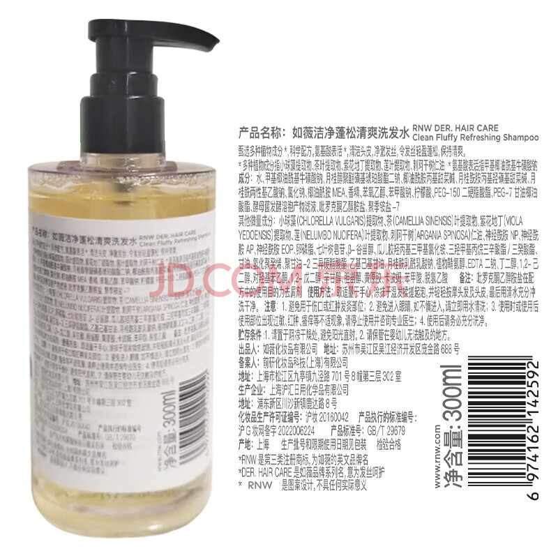 商品相册:如薇(RNW)洁净蓬松清爽洗发水300ml止痒柔顺改善毛躁静电无硅油洗头露膏第