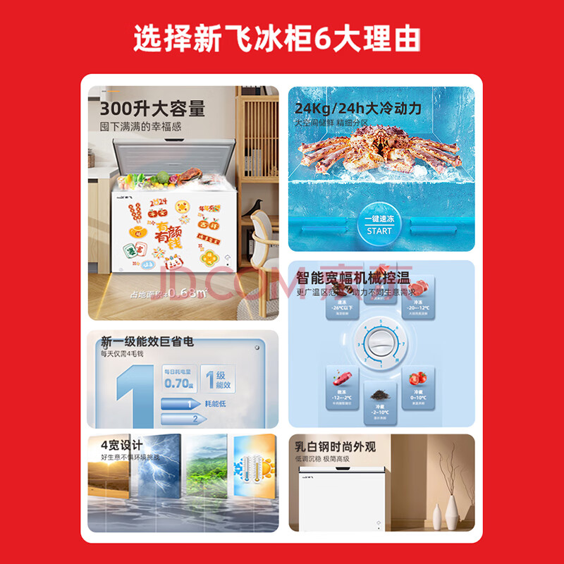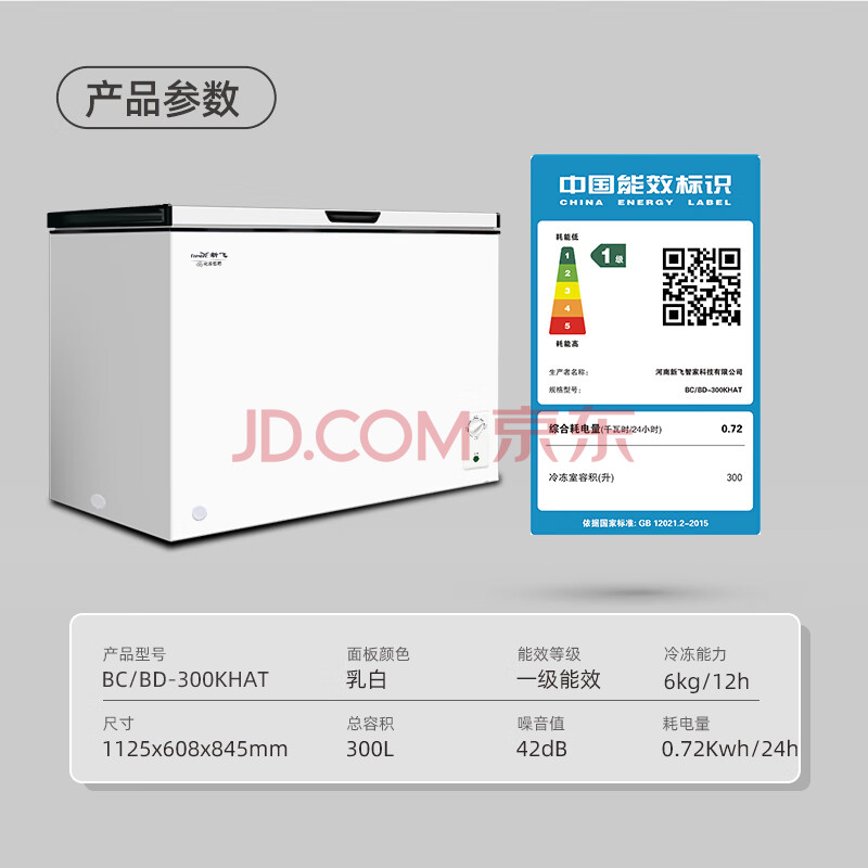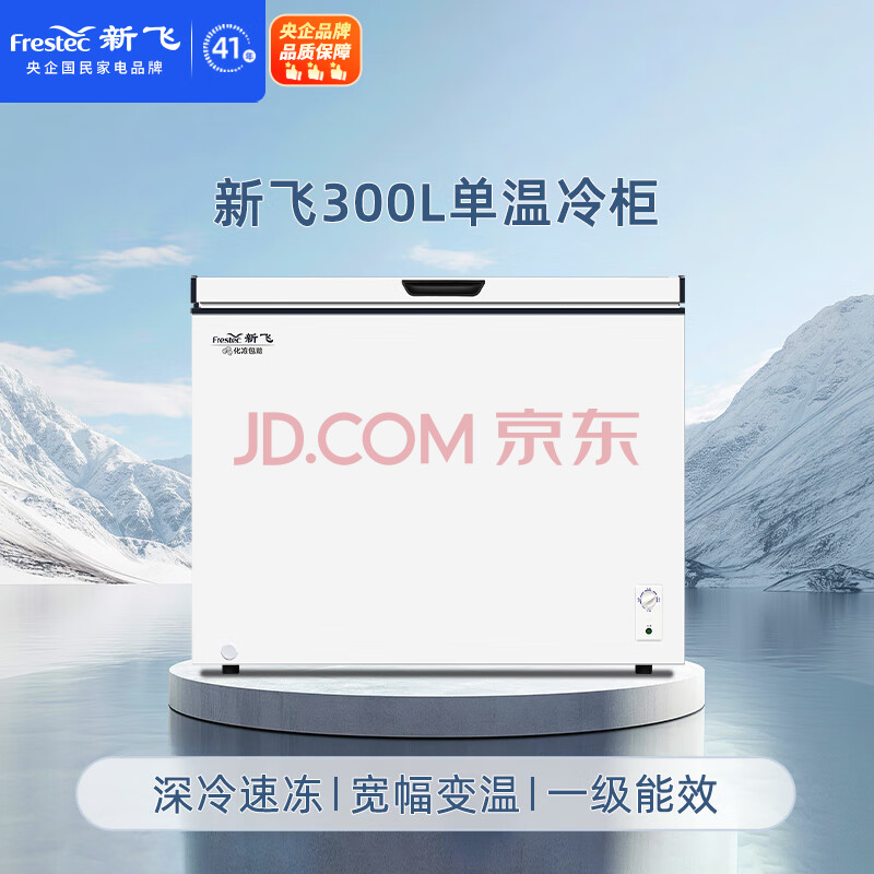 商品相册:新飞300L单温家用冷柜一级冷藏冷冻两用卧式冰柜节能省电宽幅变温小冰箱BC/BD-300KHAT 第