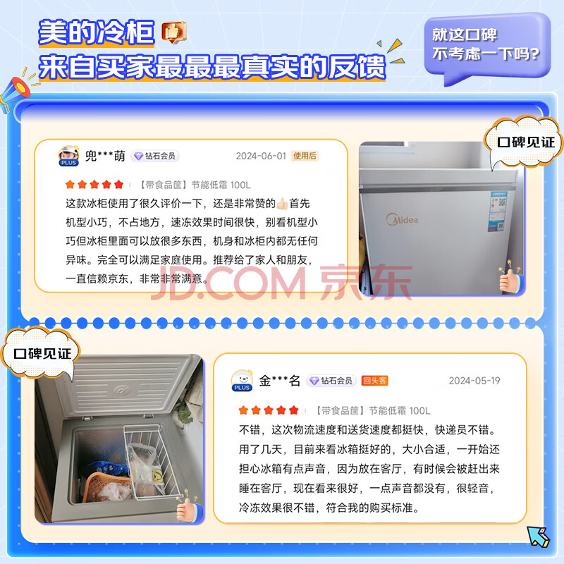 商品相册:美的(Midea)100L单温家用冰柜冷藏冷冻柜两用低霜小冰柜一级能效节能冷柜小型冰箱BD/BC-100KMD(E)焕新补贴第