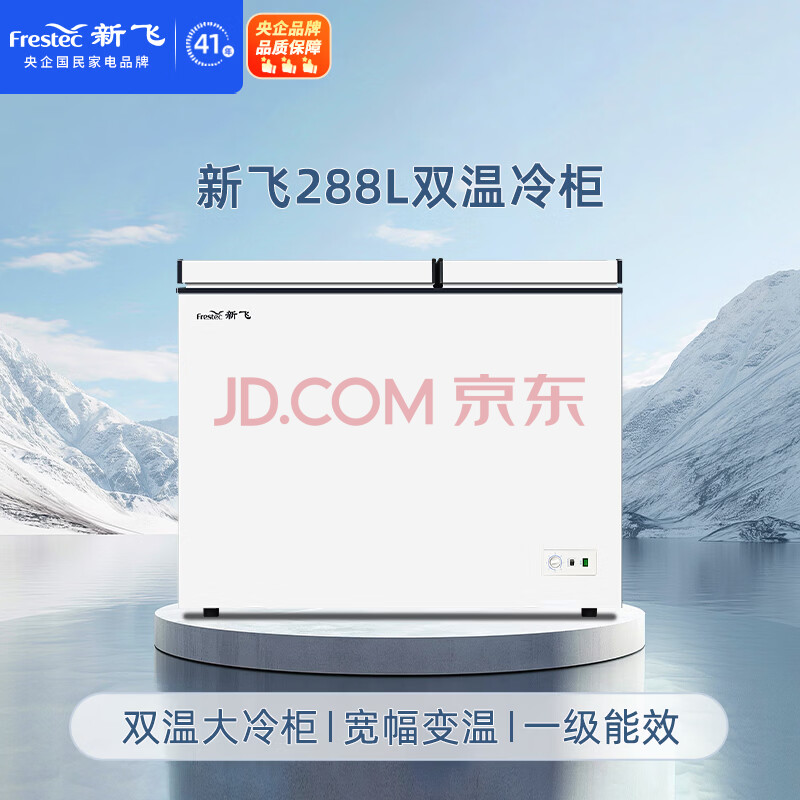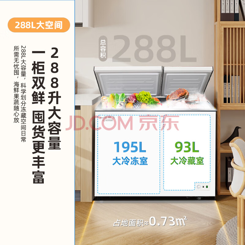 商品相册:新飞288升双温家用冷柜 一级能效冷藏冷冻两用卧式冰柜节能省电宽幅变温冰箱BCD-288AHST8A 第1张/共7