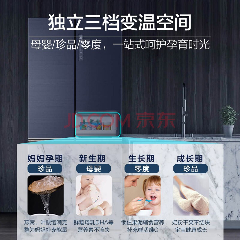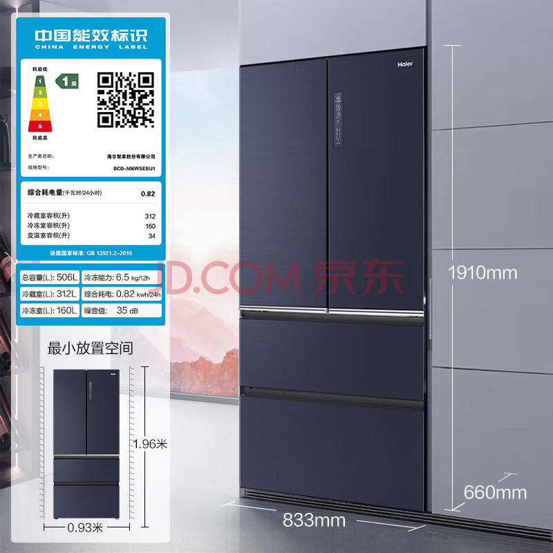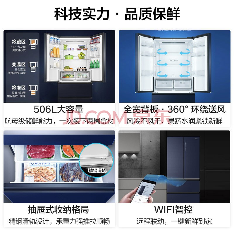 商品相册:海尔(Haier)506升全空间保鲜科技法式四开门多门电冰箱家用一级能效节能超大容量无霜超薄嵌入式BCD-506WSEBU1第
