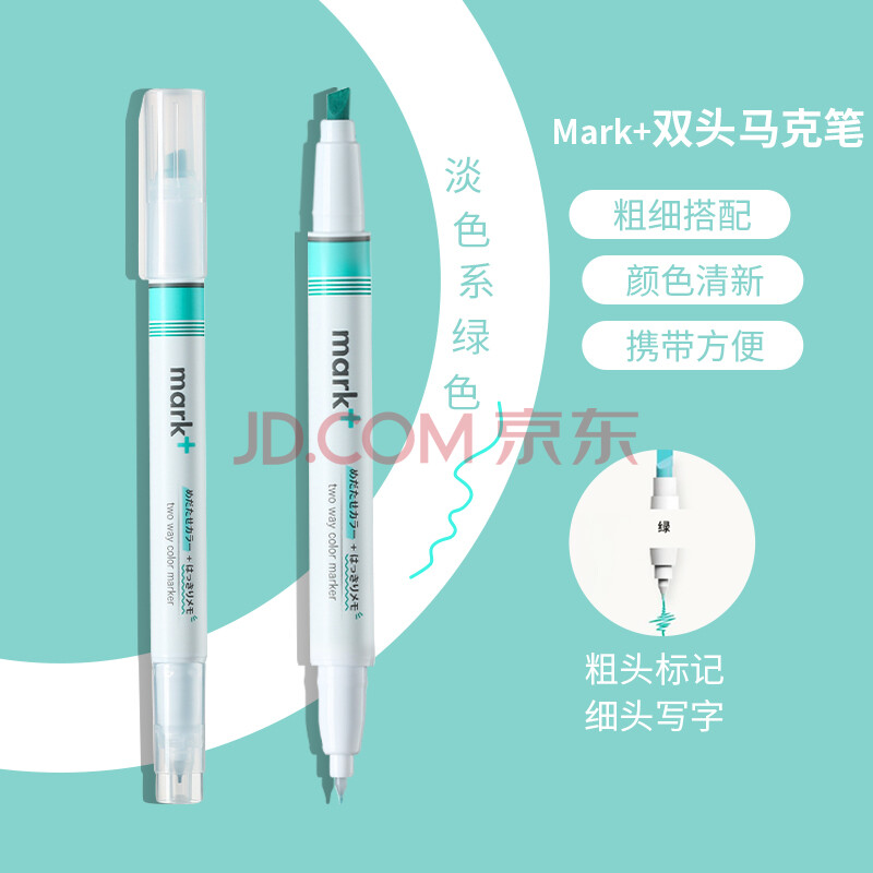 商品相册:国誉(KOKUYO)进口mark+彩色荧光笔 学生用划重点标记记号笔 双头绿色 1支装PM-MT200G第