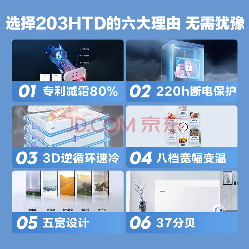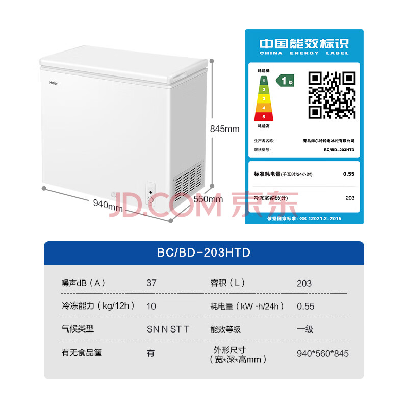 商品相册:海尔(Haier)203升低霜小冰柜家用商用 冷藏柜冷冻柜两用冰柜小型租房用小冰箱小型冷柜BC/BD-203HTD 第