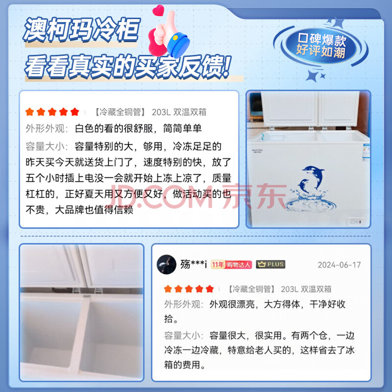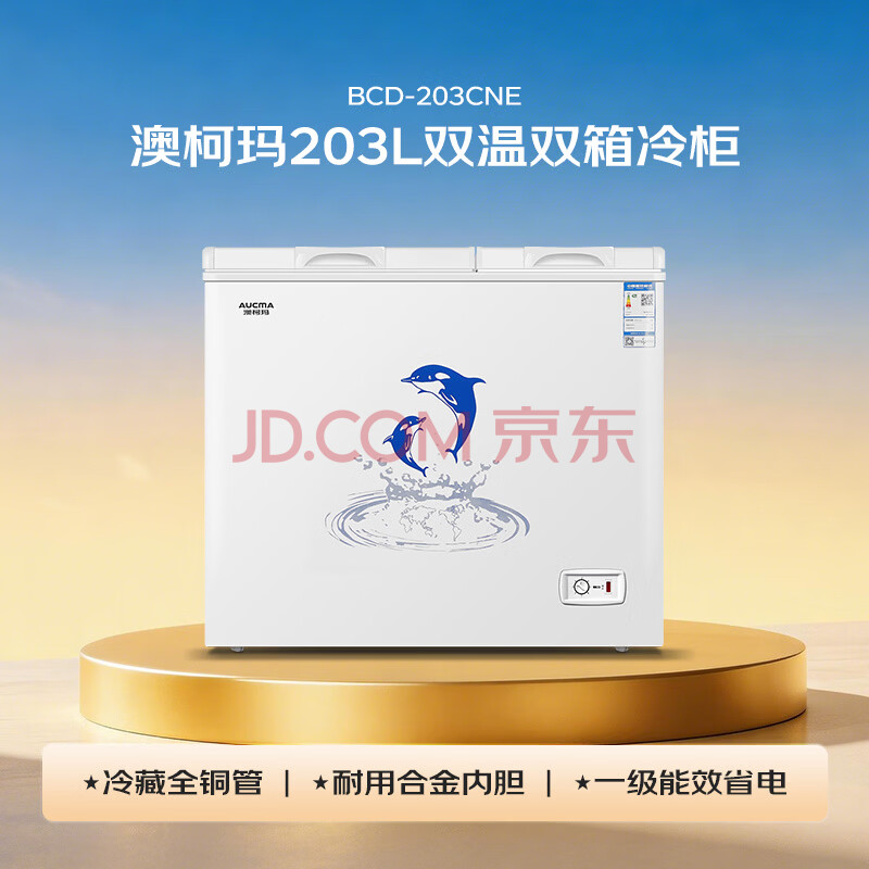商品相册:澳柯玛(AUCMA)双温系列203升双箱家用冰柜 冷藏冷冻卧式双门钢板冰箱 冷藏全铜管 一级能效 BCD-203CNE 第