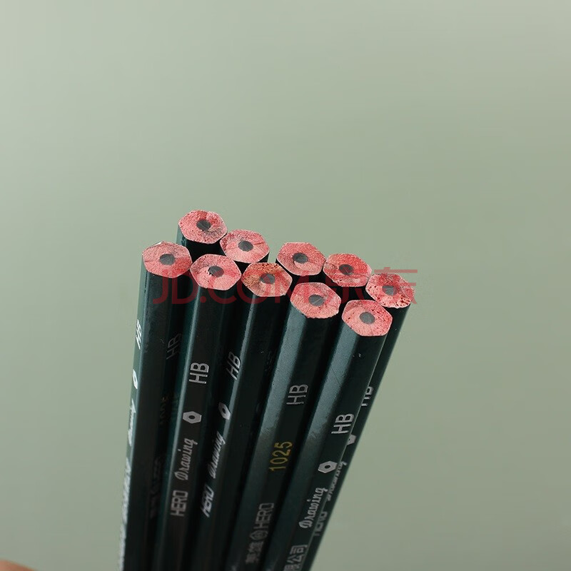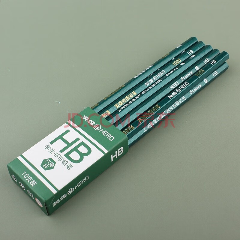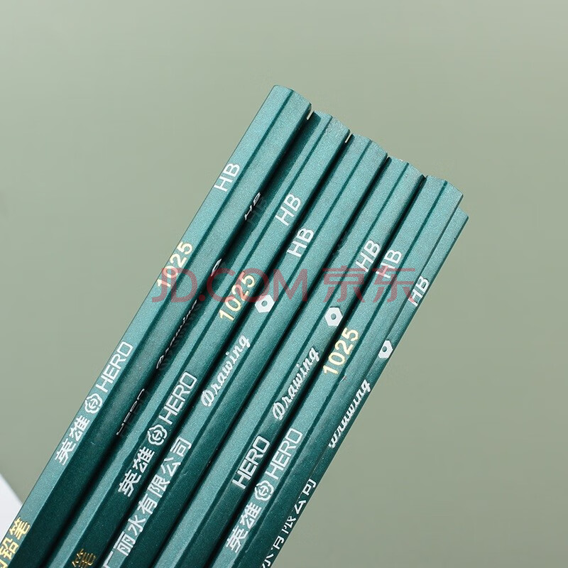 商品相册:英雄(HERO)铅笔 红木六角杆闪光绿两头切光学生考试素描绘图铅笔 10支装 1025-HB第