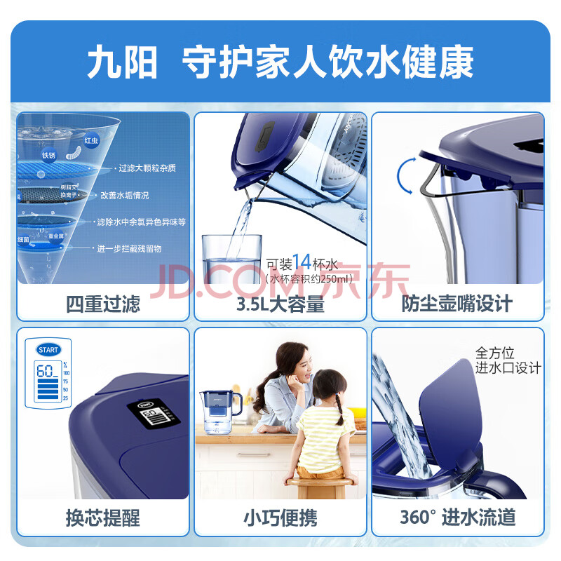 商品相册:九阳(Joyoung)滤水壶 过滤净水器 家用净水壶 JYW-B05(1壶7芯套装)第