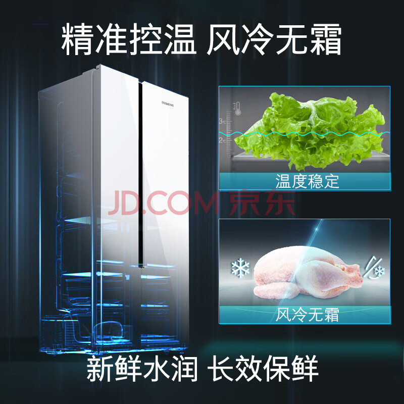商品相册:西门子(SIEMENS)纤薄款530L对开门冰箱 大容量 风冷无霜 精准控温 白色 BCD-530W(KX52NS20TI)【专】第