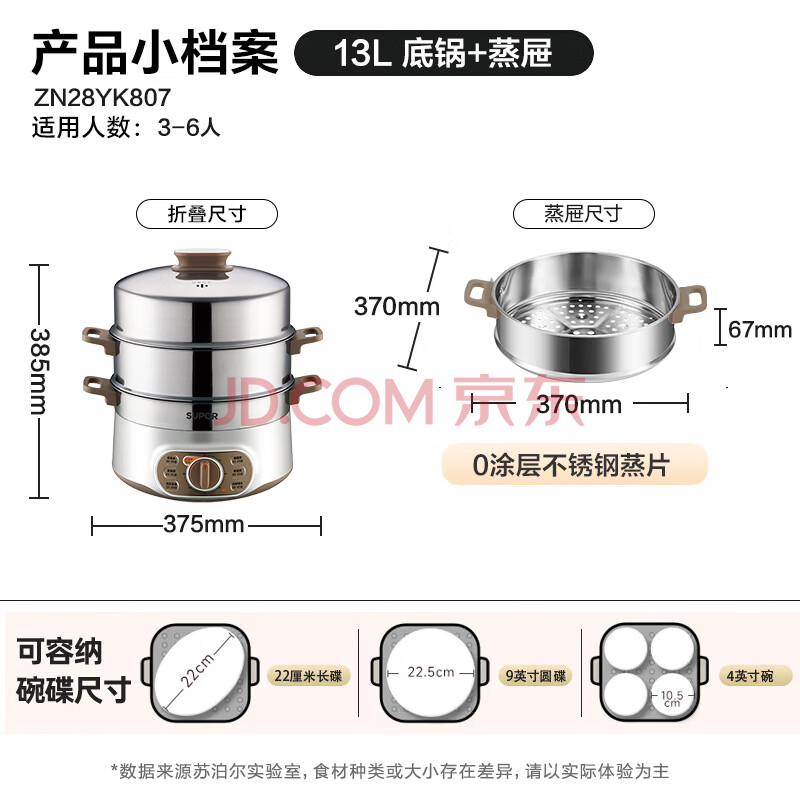 商品相册:苏泊尔(SUPOR)电蒸锅 电煮锅电火锅火锅锅多功能锅家用蒸包子锅电热锅三层多用途锅13L可定时ZN28YK807 第