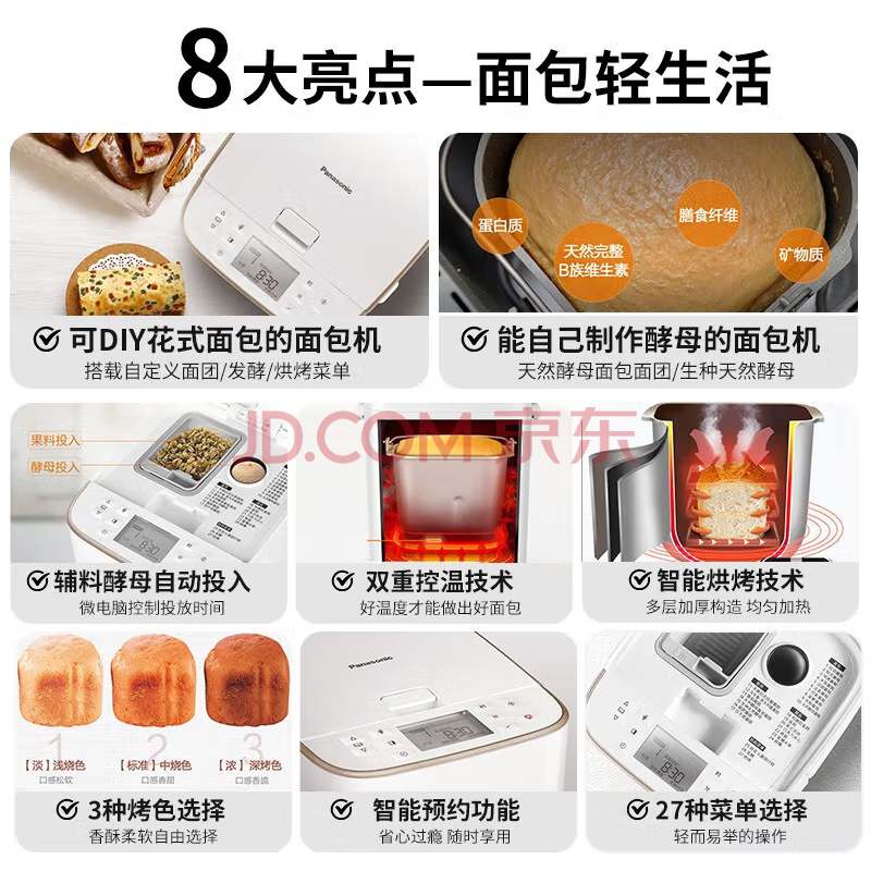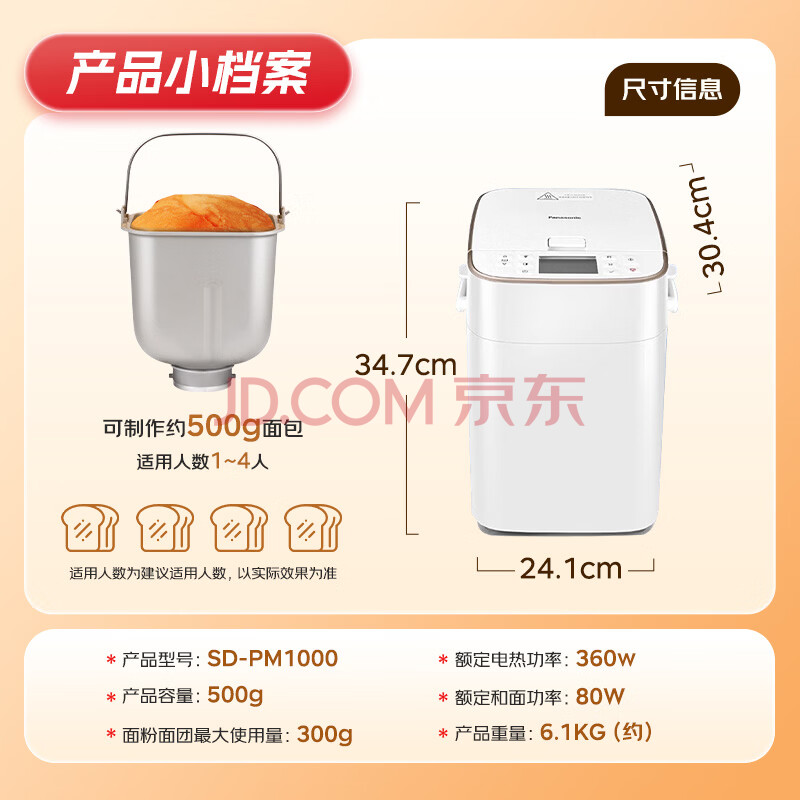 商品相册:松下(Panasonic)全自动智能面包机智能撒果料多功能和面家用SD-PM1000面包机第