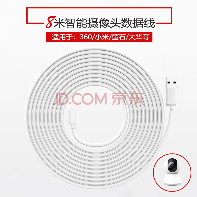 商品相册:trendsetter适用小米摄像头电源延长线8米360小白萤石华为乐橙小蚁TP-link普联乔安摄像机电源线8M安卓数据线第