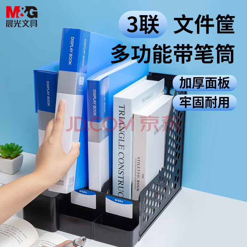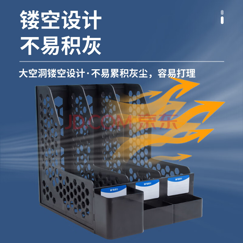 商品相册:晨光(M&G)文具三联镂空桌面文件框 三栏带标签稳固文件栏/文件筐/资料框 黑色单个装ADM929R9A第