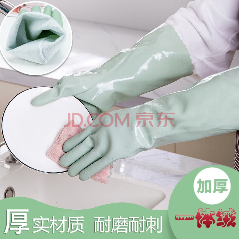 商品相册:美家日记冬季长袖保暖植绒手套 PVC苹果绿均码1双装防水防污防滑耐磨手套第