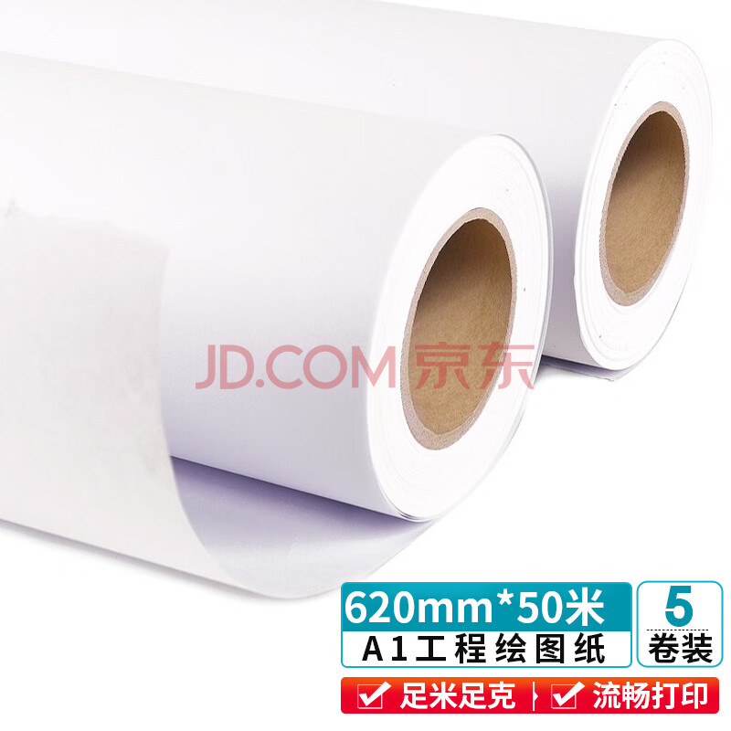 商品相册:天章 (TANGO)A1 80g 绘图纸 工程纸 卷式加厚复印纸 打印纸 数码纸机械设计CAD制图 2寸芯 5卷(620mm*50m)第