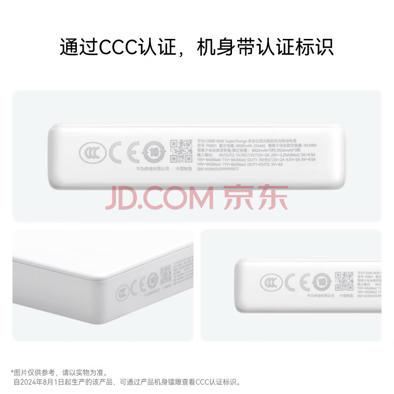 商品相册:华为【3C认证】可上飞机12000mAh 66W双向超级快充移动电源充电宝旗舰手机原装电芯安全白色户外电源第