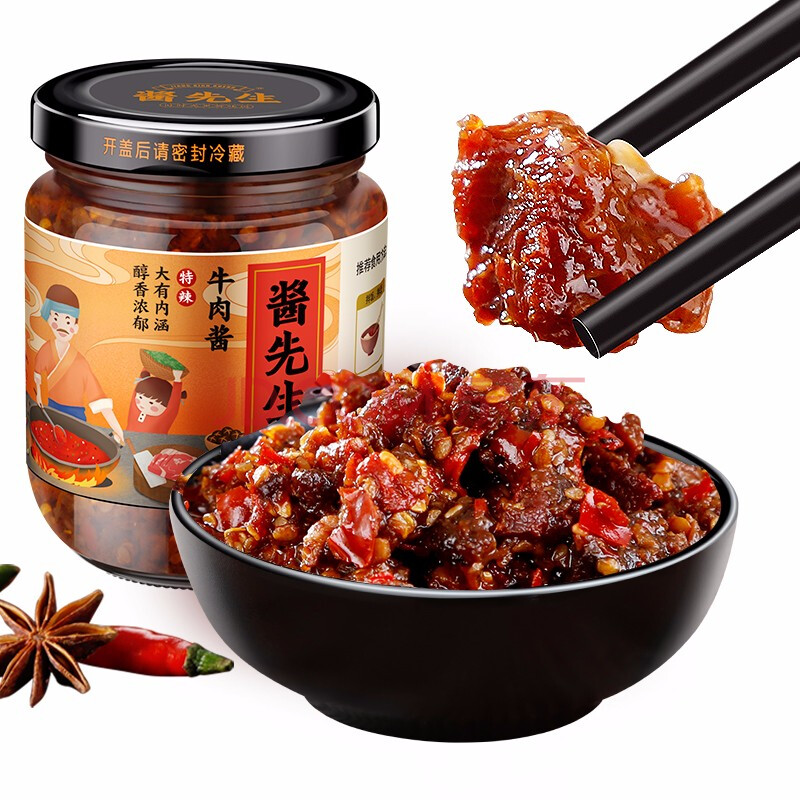 商品相册:酱先生牛肉酱230g 香辣酱下饭神器香辣椒酱超辣拌面下饭菜特辣第