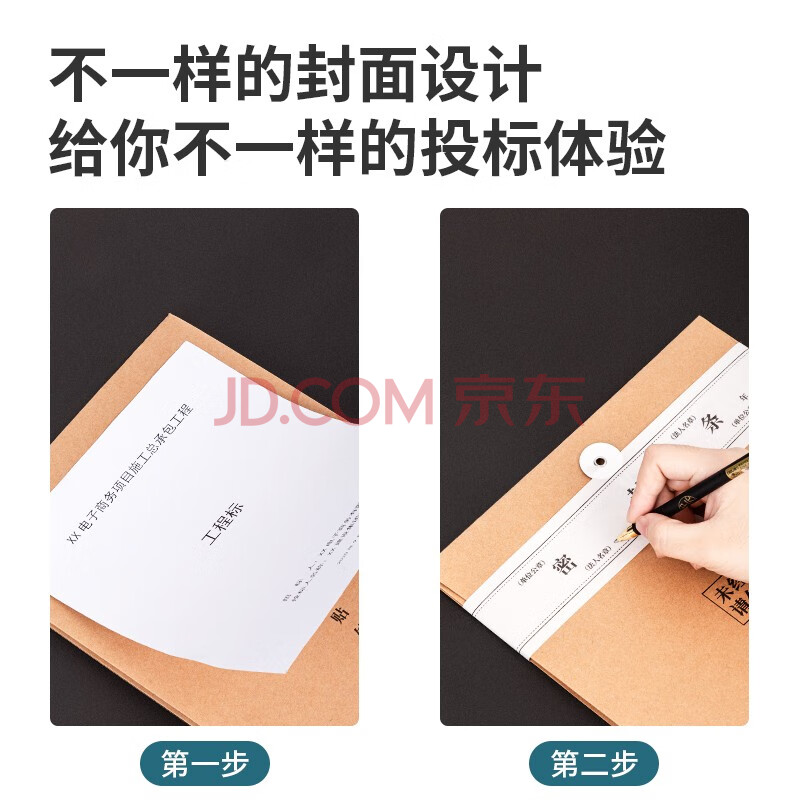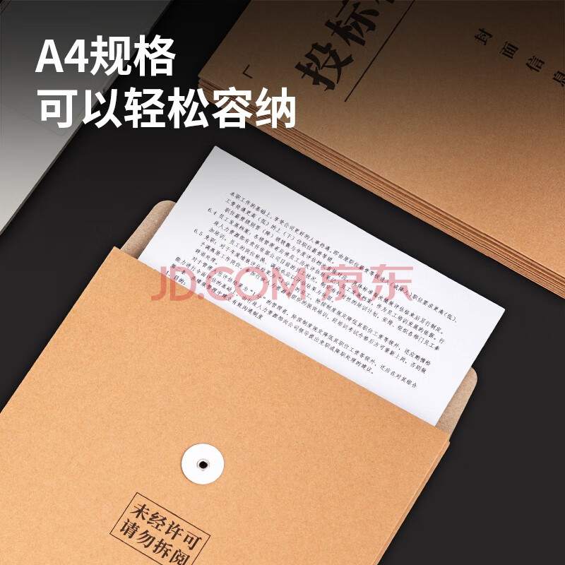 商品相册:得力(deli)20只投标专用A4混浆牛皮纸档案袋 250g加厚款/侧宽4cm合同标书资料袋文件报告票据凭证保护 33415第1张/共6