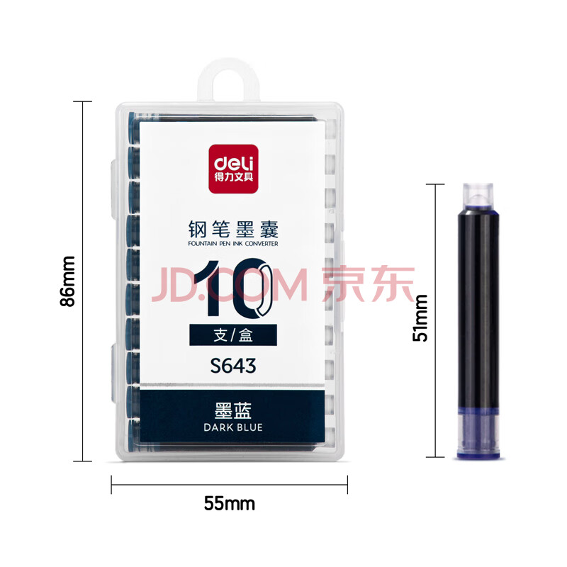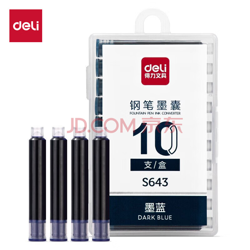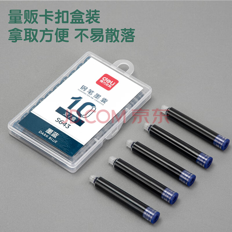 商品相册:得力(deli)钢笔墨囊 学生钢笔墨水笔墨囊 可替换 10支/盒小包装DL-S643墨蓝第1张/共5