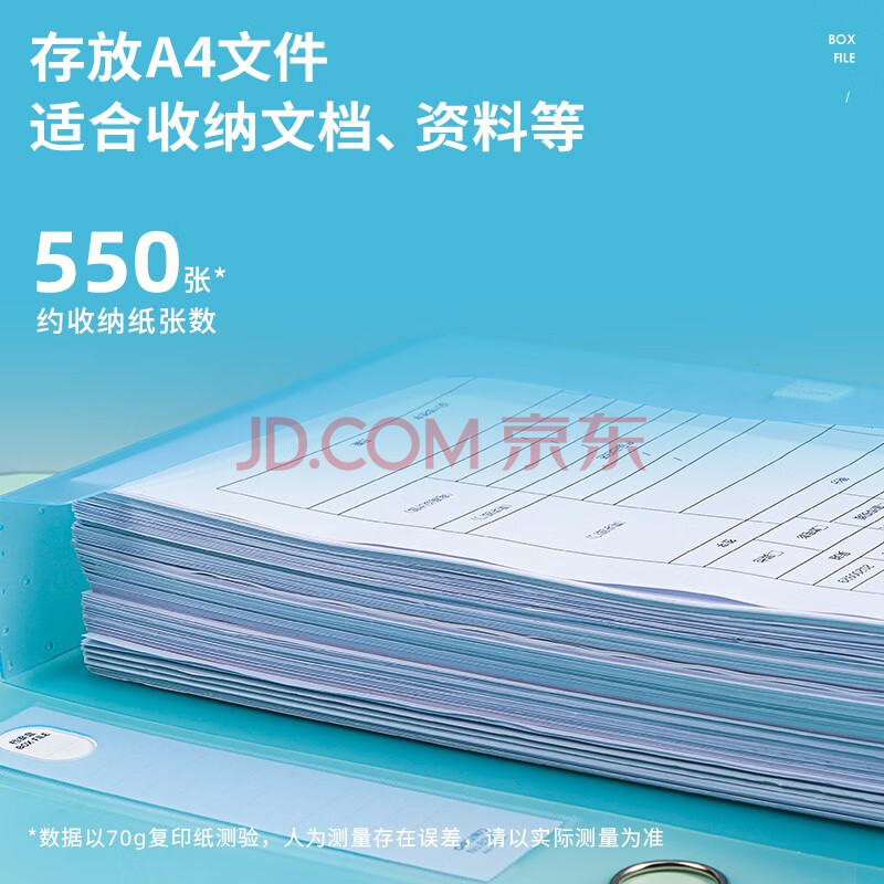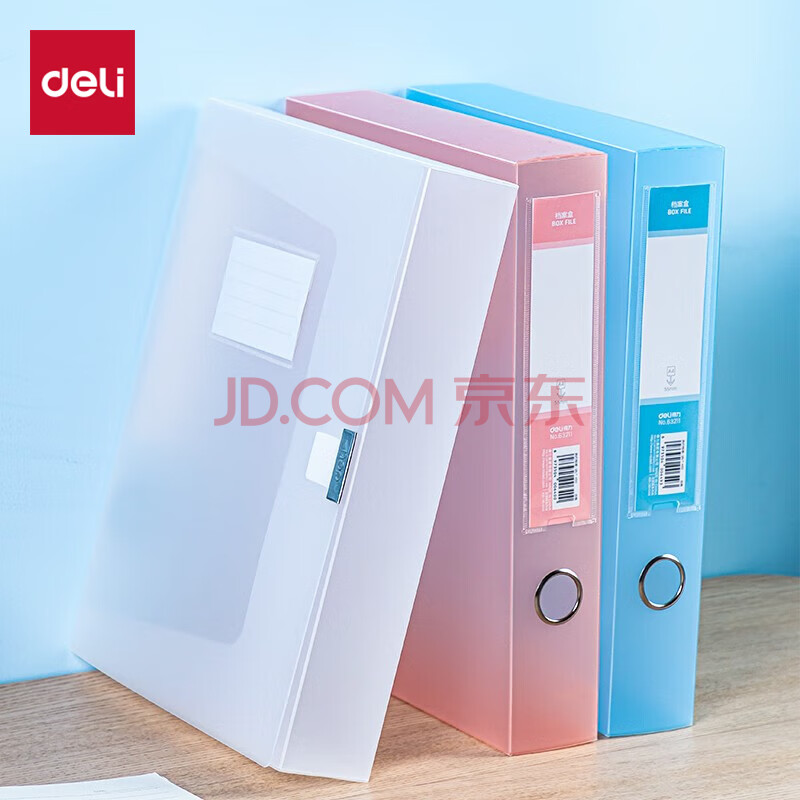 商品相册:得力(deli)55mmA4塑料文件盒 时尚简约彩透系列 财务票据试卷收纳档案盒 蓝色63211第