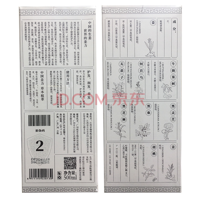商品相册:姜力洗发水套装(1号+2号)生姜姜汁洗发露控油去屑乳洗护套装第