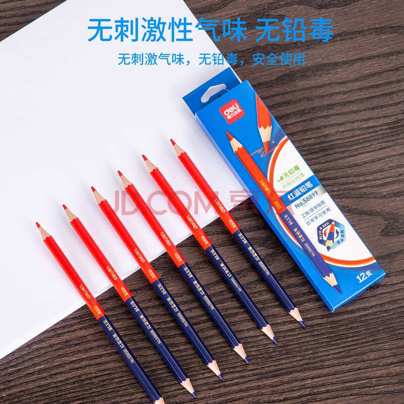商品相册:得力(deli)12支红蓝铅笔双头设计绘图工业工程木工标记彩色铅笔学生开学文具第
