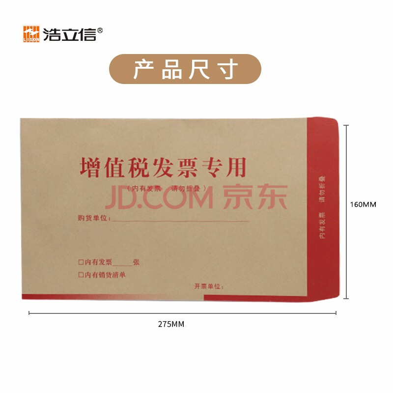 商品相册:浩立信【全网低价】浩立信(LISON)1523-100个/包增值税发票专用信封办公用品发票袋夹牛皮纸财务票据袋第