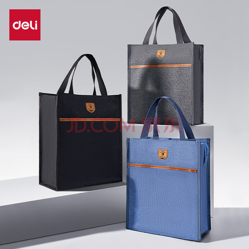 商品相册:得力(deli)学生补习袋 大容量多功能手提袋购物袋 拎书袋 儿童美术袋补课书包 灰色开学必备第