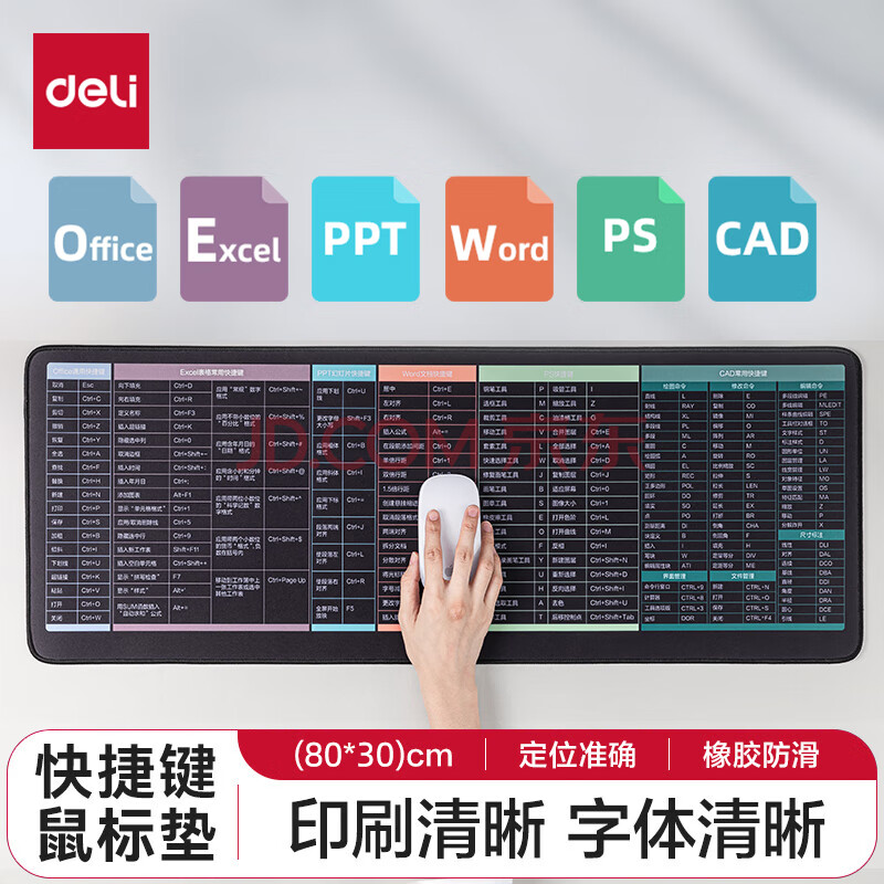 商品相册:得力(deli)快捷键鼠标垫 800*300*3mm 快捷键大全大号鼠标垫 家用鼠标垫办公电脑桌垫 83004第
