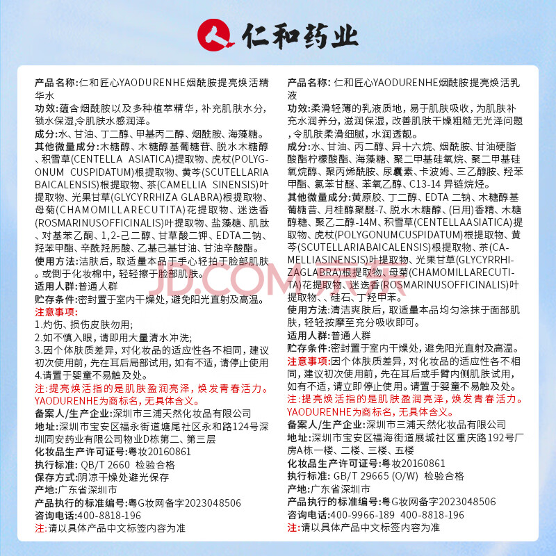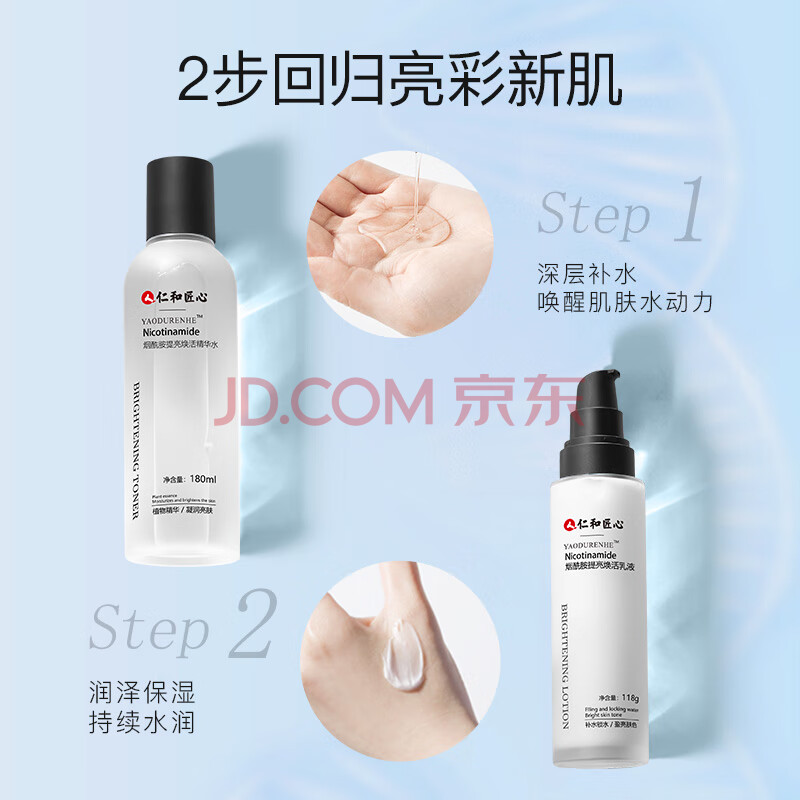商品相册:仁和匠心烟酰胺精华水 春夏天补水保湿爽肤水 滋润乳液紧致透亮护肤品男女第