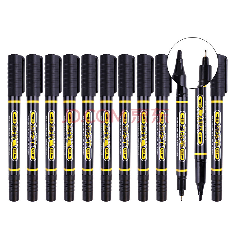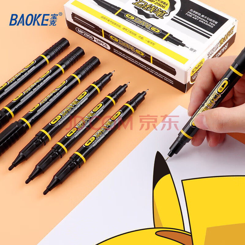 商品相册:宝克(BAOKE)MP2906 小双头水性勾线笔 美术绘画勾线用笔 黑色 12支/盒第