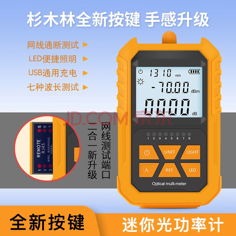 商品相册:杉木林 迷你多功能光功率计 高精度光纤线网线 数字光源光衰测试仪 支持7钟波长-50+20电池B款 SML-D28第
